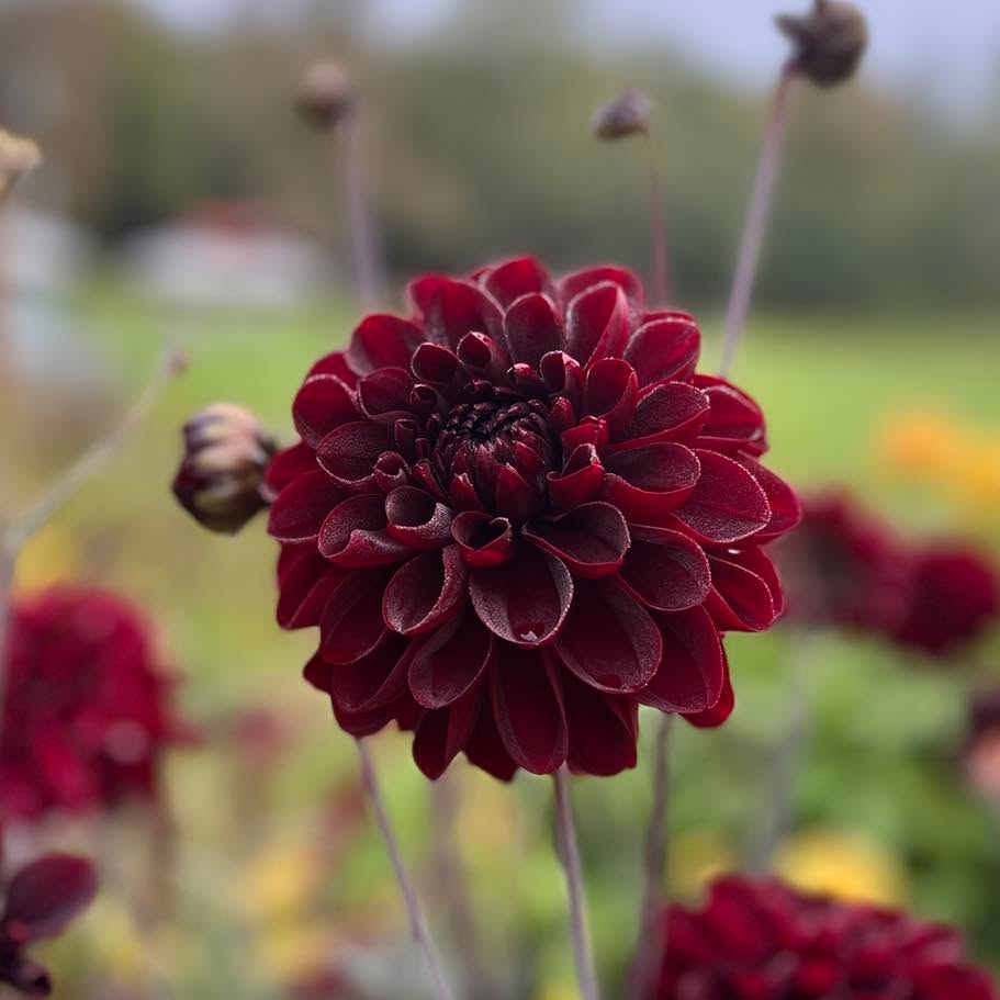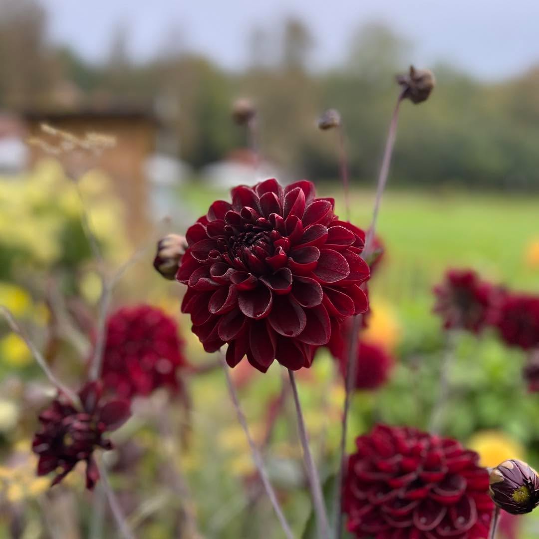 Manoa is one of the many burgundy dahlias we grow. This variety replaced Karma Choc in our gardens. Its superior bloom form and productivity through the growing season motivated the replacement.